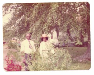 I think my mom inherited her love of gardening from my grandmother. As children, we spent summers at Grandma’s house and if you wanted to make her mad, pluck the blooms off of one of her flower bushes! (She just didn’t understand that those blooms made the best make-believe food when we played “restaurant”. Elephant ears were great collard greens, too.) I ran across these old pictures in a photo album. They were taken at my grandmother’s house. Check out the flower gardens in the background!